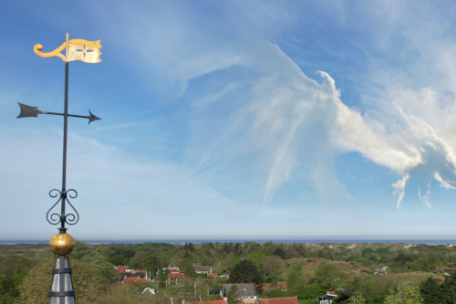 Terwijl ik de iconische kerktoren vastlegde, verschenen de wolken opeens in een vorm die mijn adem deed stokken. Een majestueuze draak zweefde perfect gepositioneerd boven het eiland. De contouren zijn zo scherp dat het lijkt alsof de hemel een schilderij is van een fantasy-epos!