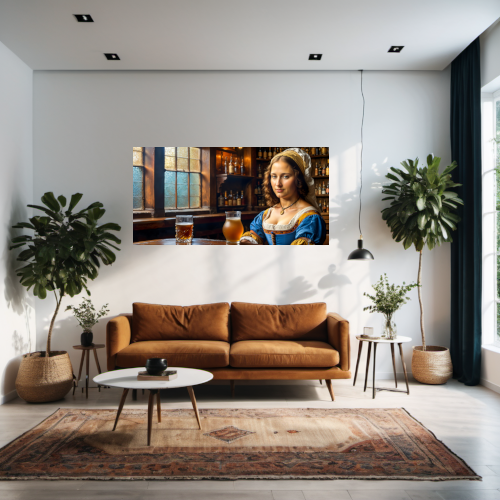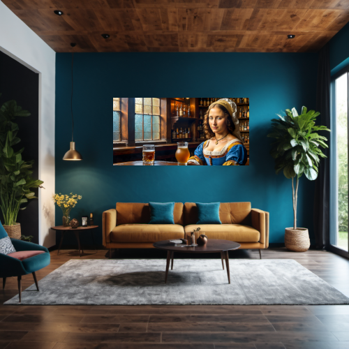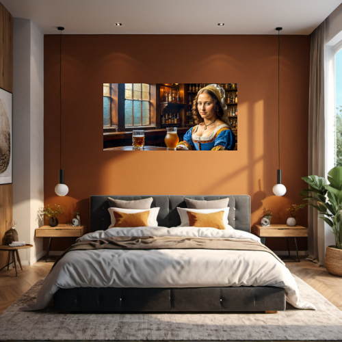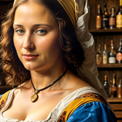Soms ontstaat iets moois per ongeluk. Ik wilde graag Mona Lisa creeeren die door Vermeer geschilderd was in een kroegsetting. Ik kreeg het gezicht van Mona Lisa met haar mysterieuze glimlach uiteindelijk goed in deze setting. Het was nog niet helemaal perfect af en ik wilde er dus nog een klein beetje aan sleutelen. Een laatste finishing touch.